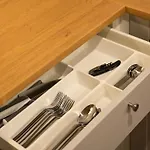 Förutom ett utrustat kök, erbjuder detta boende matplats. Busshållplatsen Strevos st är belägen ganska nära lägenheten.